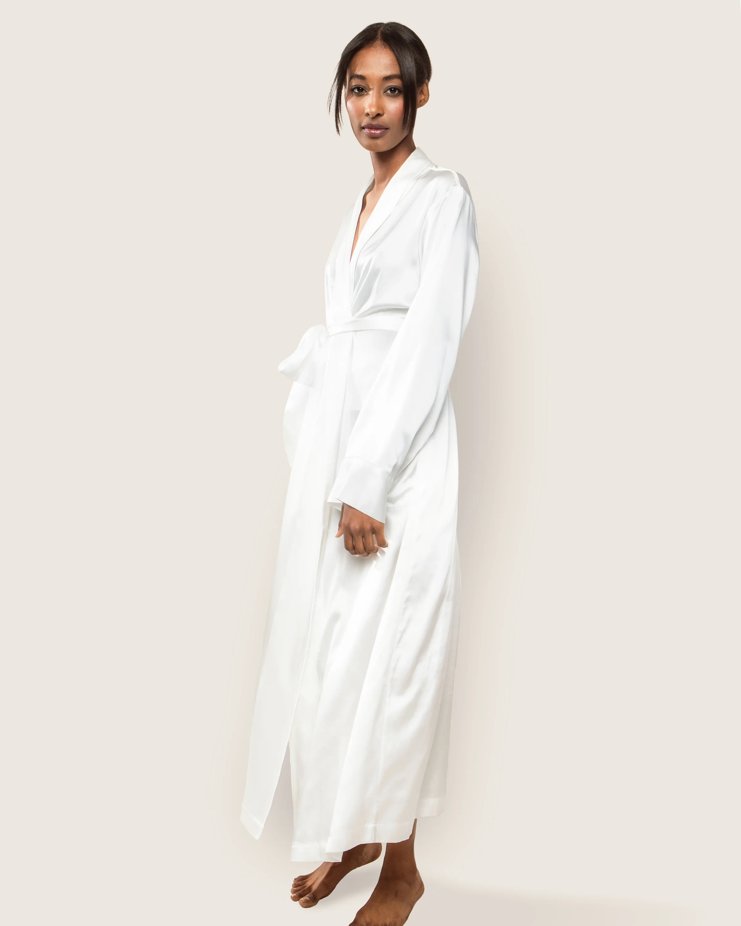 The pièce de rĂ©sistance of pajamas: the perfect supple luxury 22mm silk robe. Ankle length, it includes all the lovely details (chic piping on the cuffs, generous sash) that grace our classic pajama silhouettes.Â