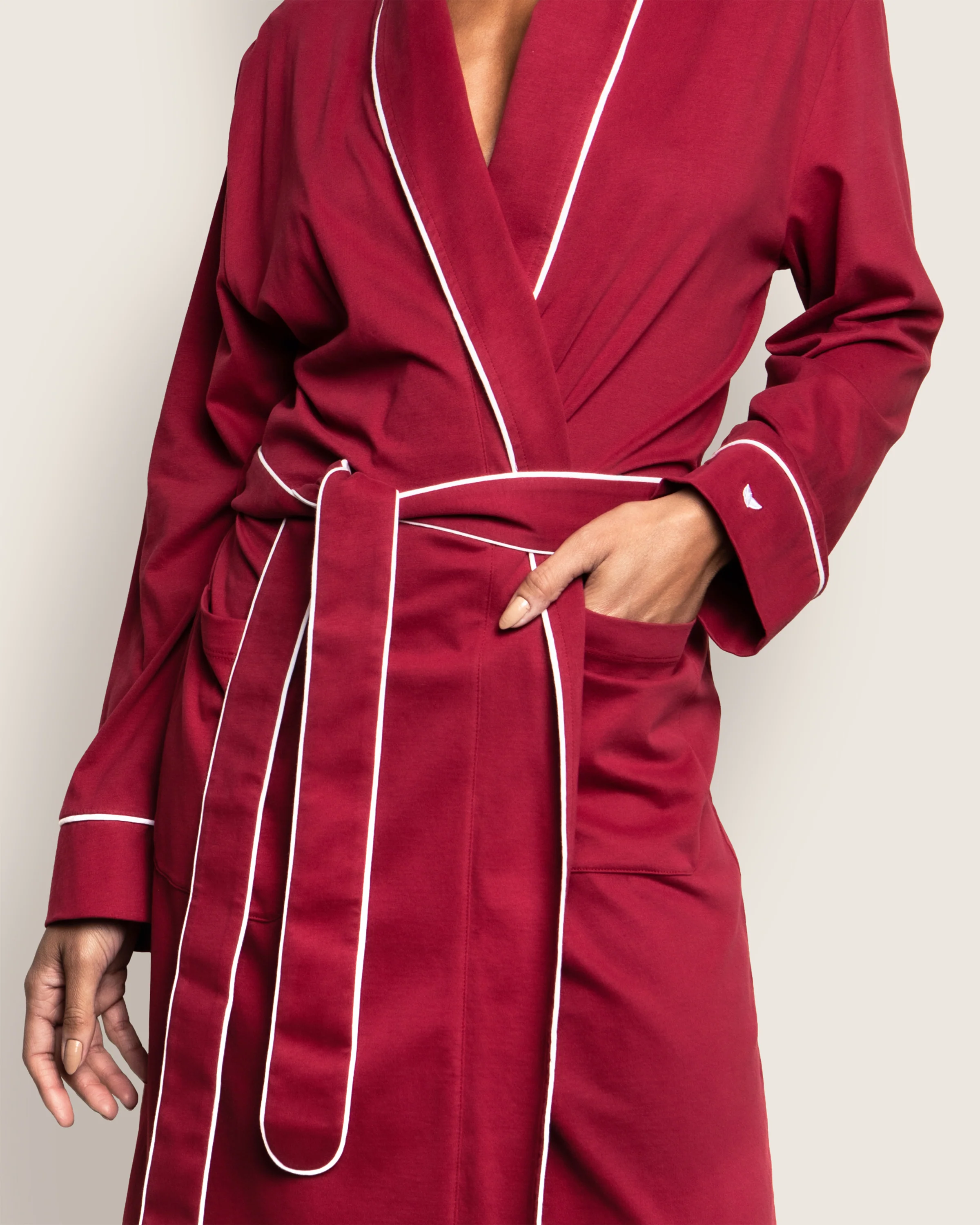 Head to sleep in simple sophistication. This versatile, serene robe is fabricated in Pima cotton, offering a cozy feel that gets softer over time. The Length falls below the knee for ease of movement and includes all the lovely details (chic piping on the cuffs, generous sash) that grace our classic pajama silhouettes.