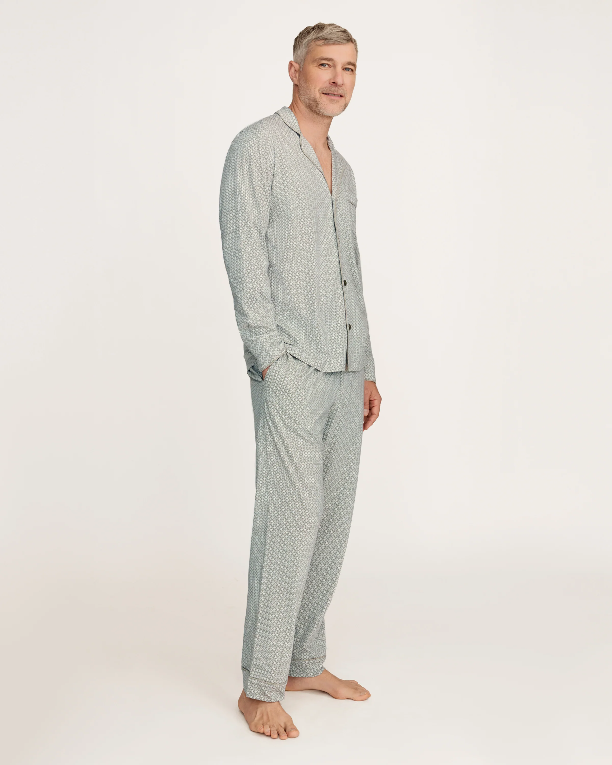 Men's Lightweight Pima Pajama Set in Sage Geo