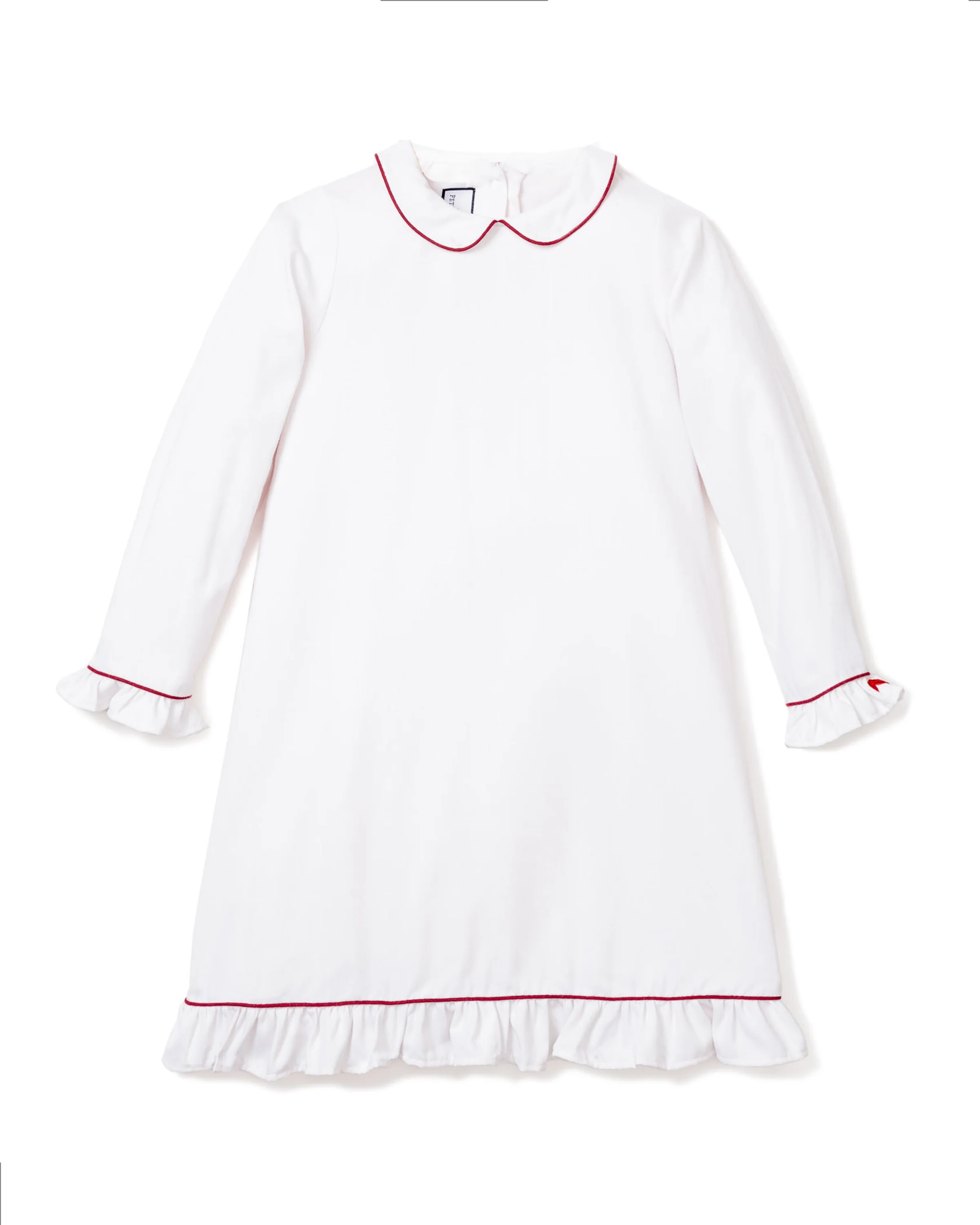 Girl's Twill Sophia Nightgown in White with Red Piping