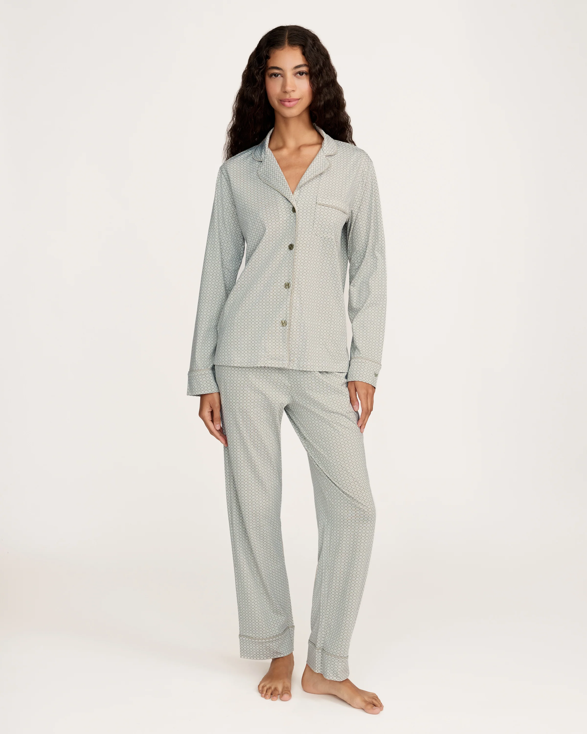 Women's Lightweight Pima Pajama Set in Sage Geo