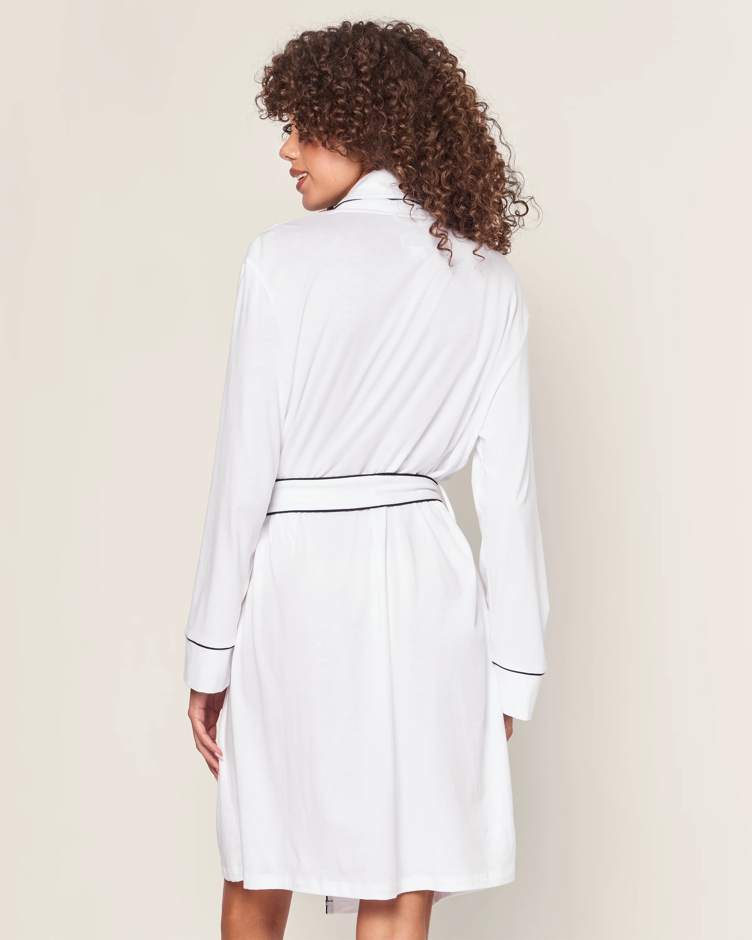 The piece de resistance of robes: the perfect supple luxury pima robe. Length falls below the knee for ease of movement and includes all the lovely details (chic piping on the cuffs, generous sash) that grace our classic pajama silhouettes.